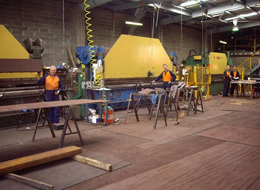 - 3 brake presses: 150 to 250 tonne capacity